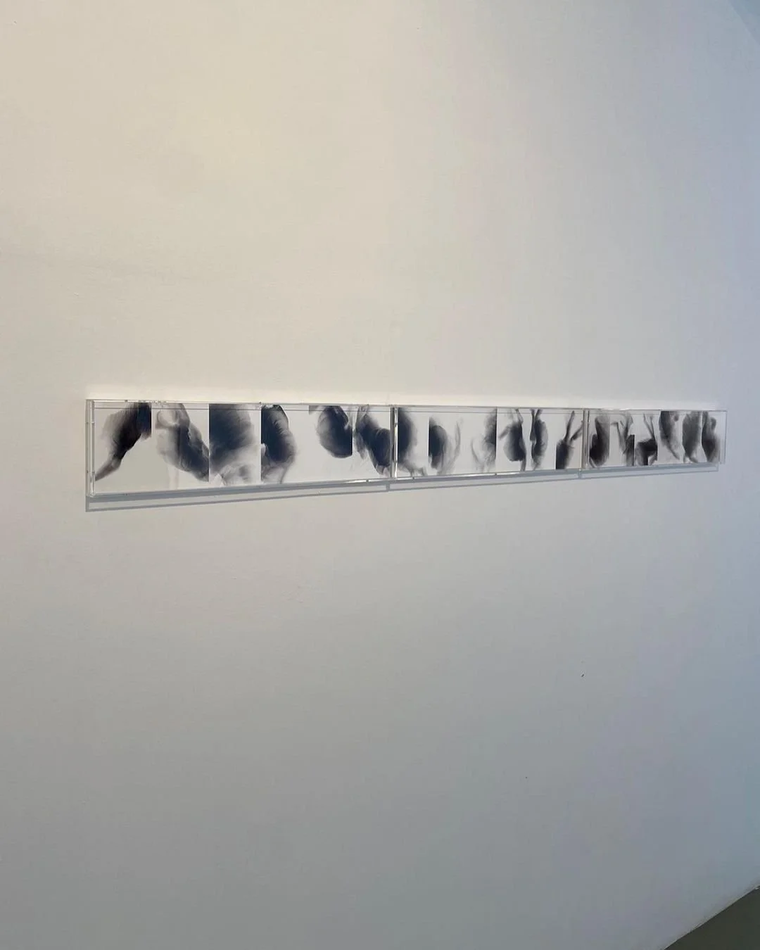 Por último, para falar de um objeto que é ritmo, movimento, repetição e ao mesmo tempo dança, o tríptico de Ana Amélia Genioli faz uma performance que cria uma modulação de ritmos através da repetição.