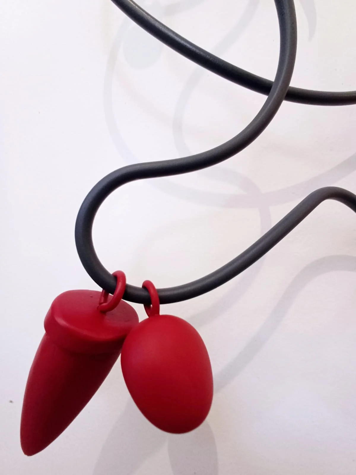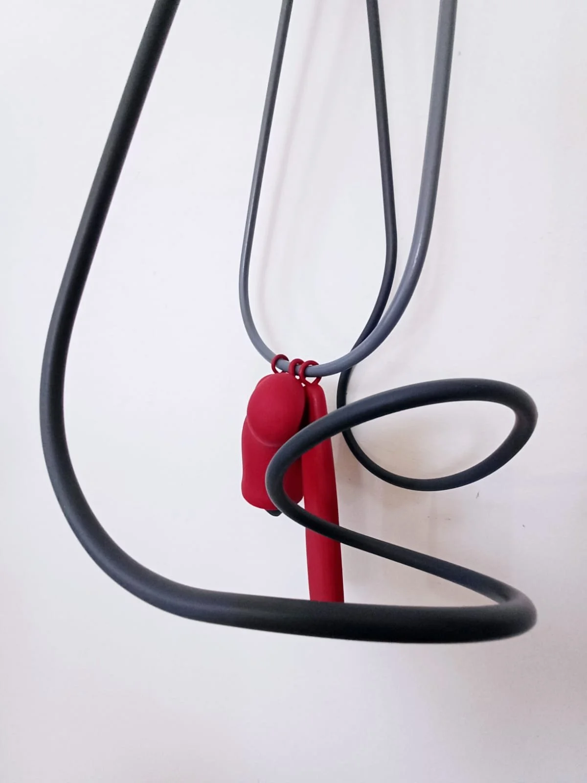 A exposição busca chamar atenção das contradições de um mundo em “tropeço”. A cor vermelha e sua carga simbólica foi usada como uma nova pele, assim como as cobras passam pelo processo de ecdise ou muda, a obra também está viva e em transformação. A tonalidade de cor é um vermelho sanguíneo, em que busco uma vibração particular, de uma visceralidade ambígua, que é contida e em alerta ao mesmo tempo.